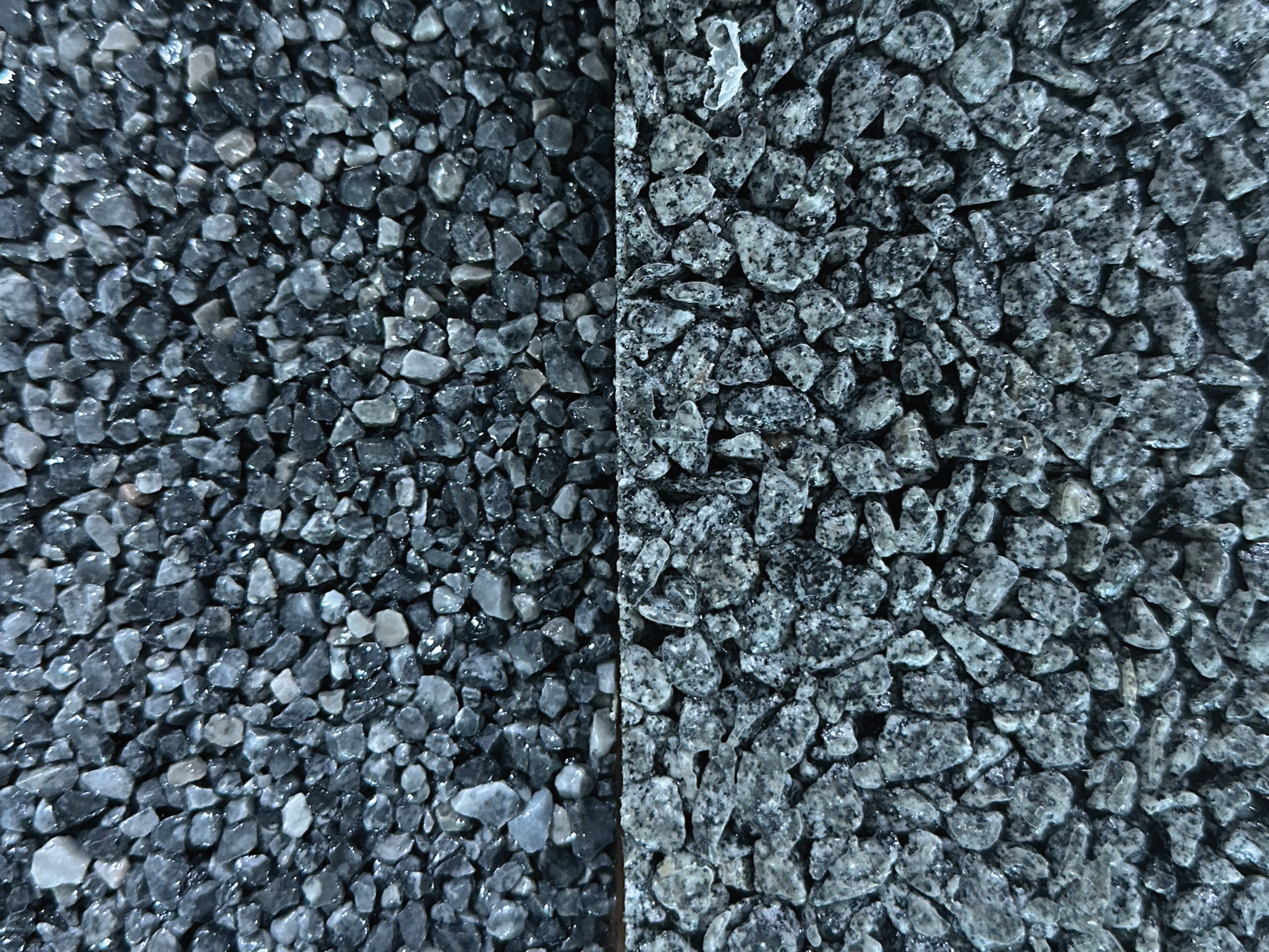 Le granulat concassé, plus anguleux, assure une meilleure accroche mécanique ce qui en fait la solution parfaite pour les zones carrossables ou à forte sollicitation.